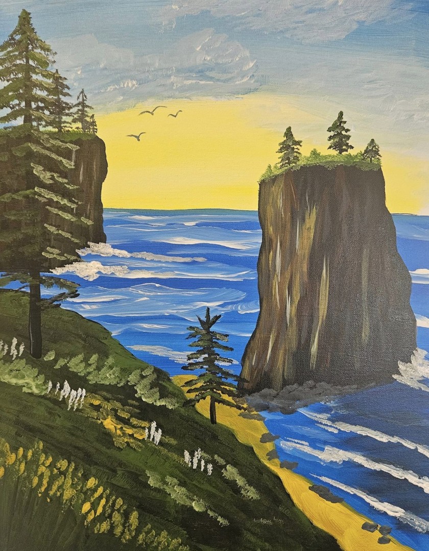 FUN Paint-Party for All Ages - No experience required - All supplies & instruction included - Painting "Oregon Coast" - Use Website Link for More Info & to Register.