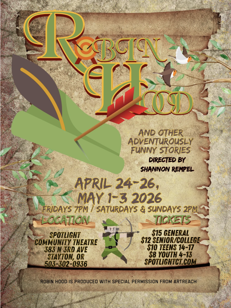 Our show will be a fun version of Robin Hood AND several short plays & monologues to be featured during the first half of the show.